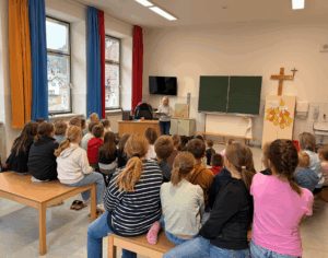 Am 12. November kam Frau Wimmer und stellte uns ihre Bücher vor. Sie sprach von Emotionen und zeigte den Kindern auch eine Übung, um einen Streit zu beenden.