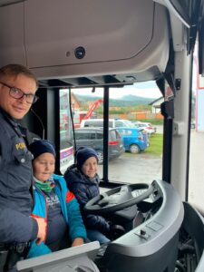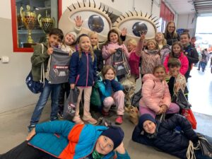 Die 2. Klasse fuhr, mit dem Bus mit der 2. Klasse der VS Mitterdorf, nach Freßnitz zur Feuerwehr. Dort erwarteten uns die Polizei und die Straßenmeisterei. Die Kinder wurden aufgeklärt über viele altersgerechte Themen rund um die Gefahren und Sicherheit im Straßenverkehr.