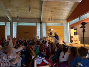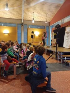 Am 16.10.2025 durften wir gemeinsam mit der VS Veitsch und der VS Mitterdorf das Kuddelmuddel Theater im Volkshaus in Wartberg besuchen. Unter dem Titel „Ungeheuer wild“ brachten uns die Darstellerin Paula und ihre Handpuppe Traudi das Schaf auf unterhaltsame und lustige Art das Thema „stark sein“ und Kinderängste näher.